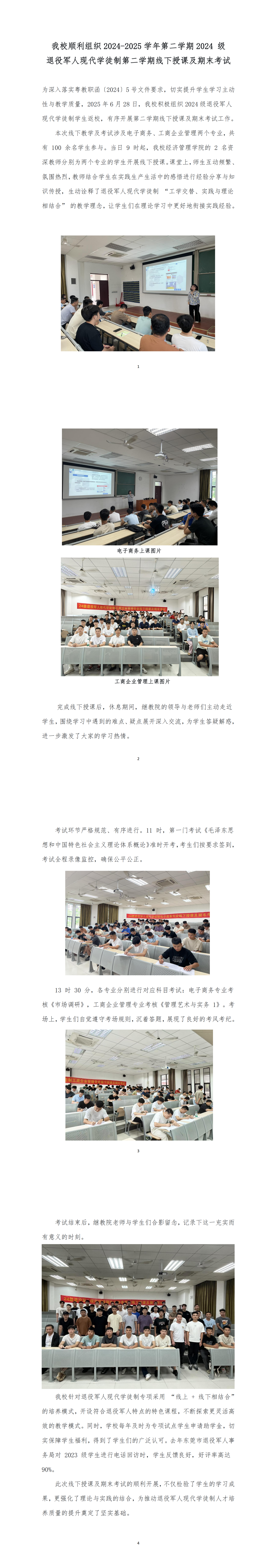 我校顺利组织 2024-2025 学年第二学期 2024 级 退役军人现代学徒制第二学期线下授课及期末考试